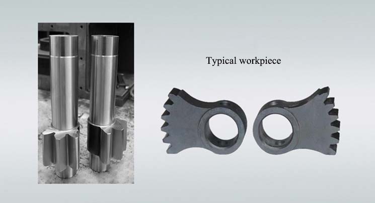 This machine is available for the rocker shaft of automobile redirector industry for processing sector gears with constant ratio, variable ratio, crowned tooth profiles or eccentric, etc. on steering shafts, especially suitable for mass production.