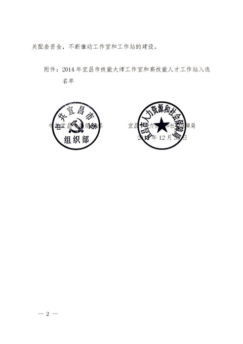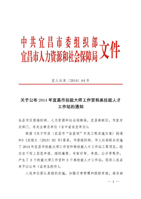 熱烈祝賀宜昌長機科技有限責(zé)任公司入選2014年度宜昌市高技能人才工作站