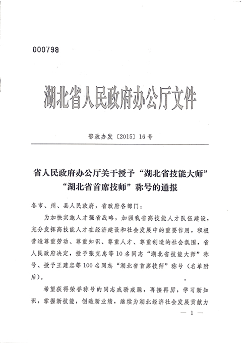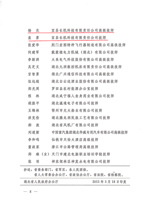 熱烈祝賀宜昌長機科技公司楊光、袁勇同志獲湖北省首席技師榮譽稱號