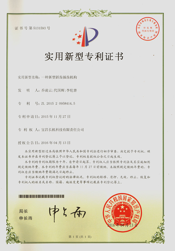 公司“一種新型斜齒插齒機(jī)構(gòu)”獲實(shí)用新型專利、“插齒機(jī)(集成型)”獲外觀設(shè)計(jì)專利,按公司規(guī)定,獎(jiǎng)勵(lì)喬凌云同志2000元以資鼓勵(lì)。