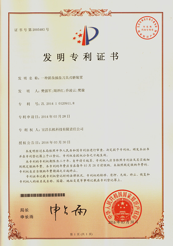 公司“用于回轉(zhuǎn)工作臺的工件自動夾緊裝置”、“插齒機(jī)側(cè)向精度調(diào)節(jié)裝置”和“一種斜齒插齒刀具刃磨裝置”獲發(fā)明專利,按公司規(guī)定,獎勵三項(xiàng)專利發(fā)明人各8000元以資鼓勵。