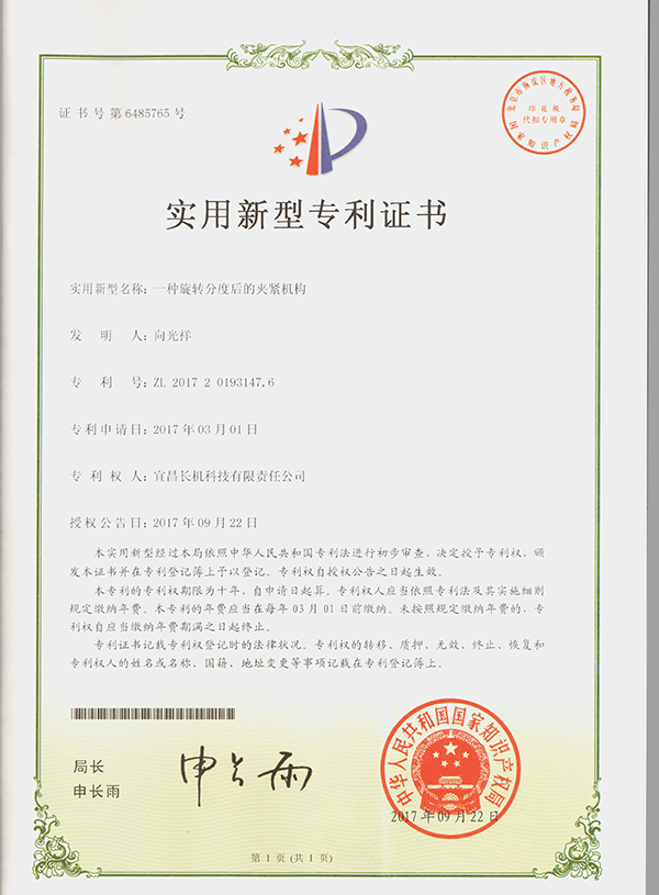 公司“一種插齒機(jī)刀架體前后擺動導(dǎo)向機(jī)構(gòu)”榮獲發(fā)明專利,“一種旋轉(zhuǎn)分度后的夾緊機(jī)構(gòu)”、“一種直線運動夾緊機(jī)構(gòu)”、 “ 一種用于軸類零件定位可調(diào)的機(jī)構(gòu)”等榮獲實用新型專利。