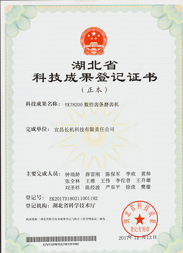 宜昌長機科技公司獲一項科技進步獎、三項科技成果證書。其中,“YK85200型高效環(huán)保數(shù)控齒條銑齒機”項目榮獲宜昌市“科技進步獎二等獎”,“φ2000-φ3000mm系列精密重載智能控制大型回轉(zhuǎn)工作臺”、“YK78200數(shù)控齒條磨齒機”和“一種自動潤滑冷卻式插齒機主軸機構(gòu)”等三項成果榮獲湖北省“科技成果登記證書”。