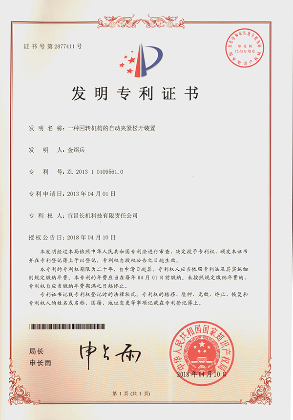 宜昌長機(jī)科技有限責(zé)任公司“一種插齒機(jī)電子螺旋導(dǎo)軌運(yùn)動控制方法”、“一種回轉(zhuǎn)機(jī)構(gòu)的自動夾緊松開裝置”榮獲發(fā)明專利。