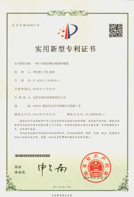 公司一種O形密封圈安裝保護(hù)裝置榮獲專利