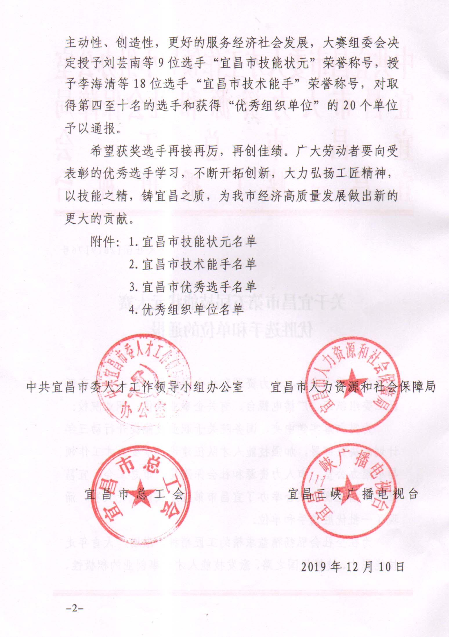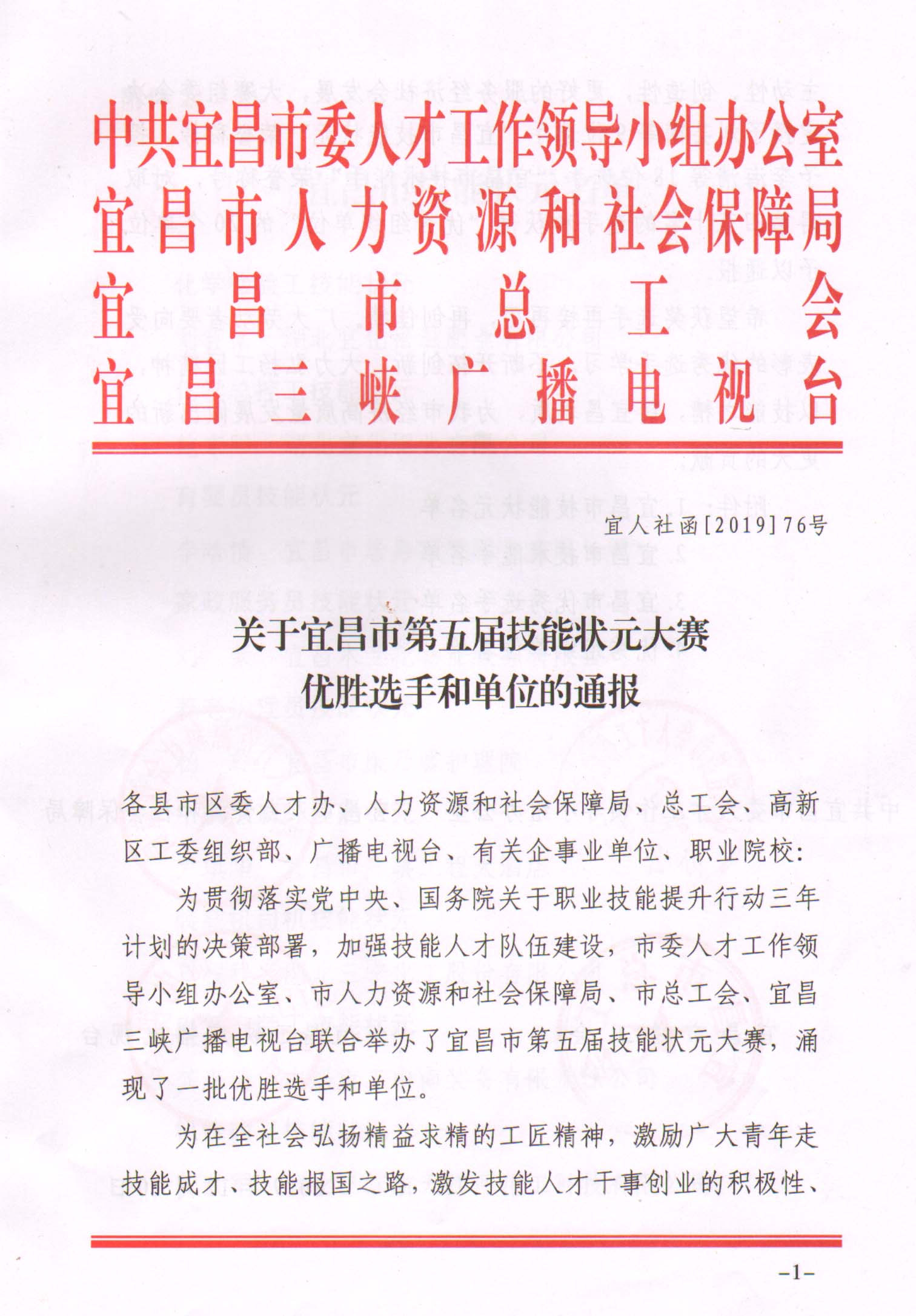 舒曉峰榮獲宜昌市第五屆技能狀元大賽“優(yōu)秀選手”