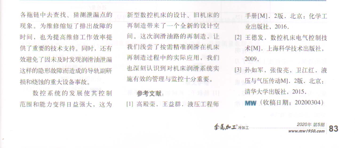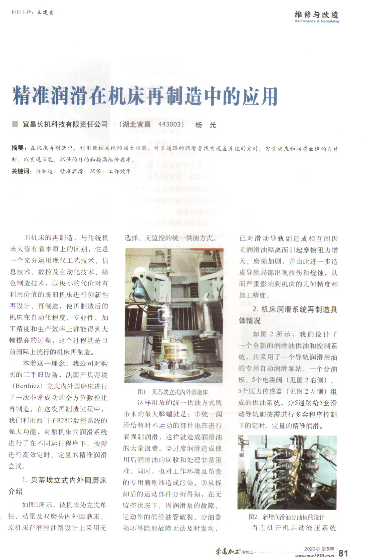 楊光在《金屬加工》雜志上發(fā)表《精準(zhǔn)潤滑在機(jī)床再制造中的應(yīng)用》一文