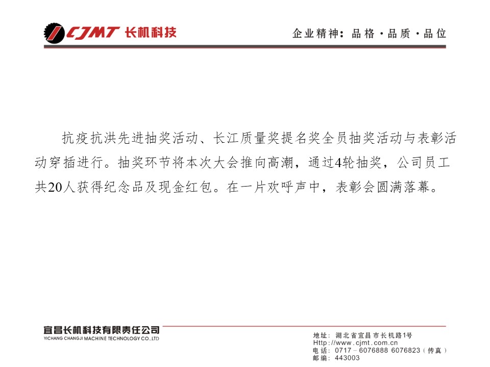 公司抗疫抗洪、長江質(zhì)量獎提名獎表彰會圓滿結(jié)束