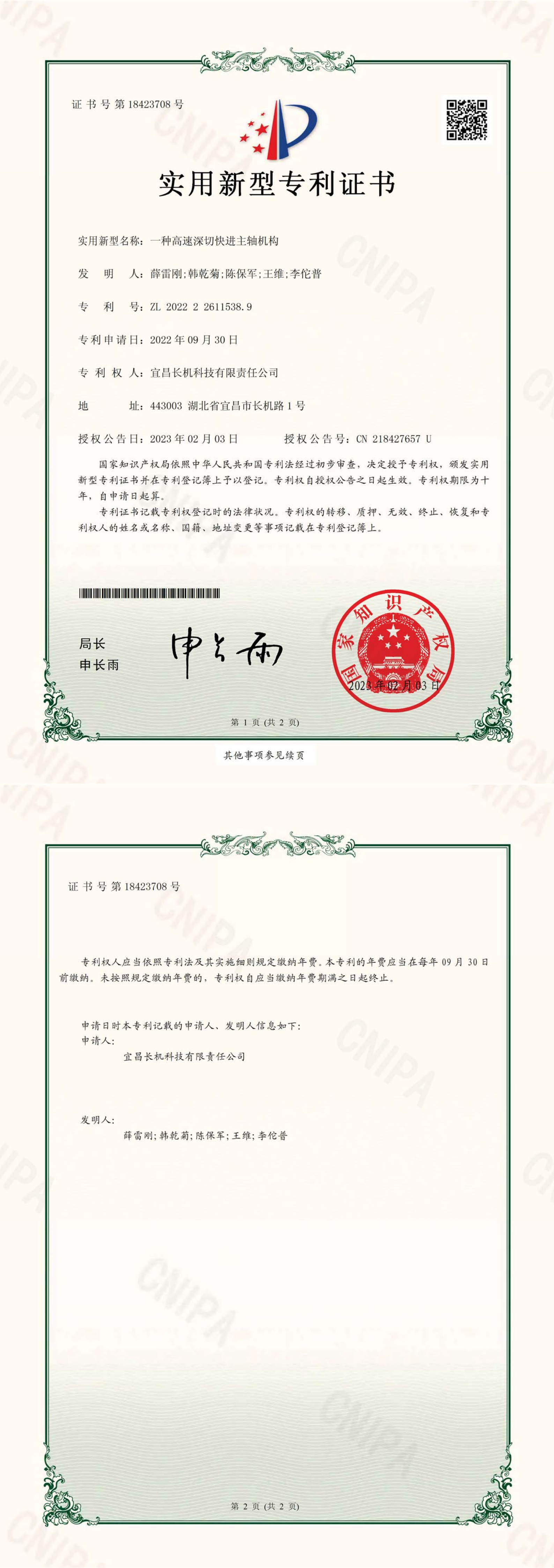 公司“一種高速深切快進主軸機構(gòu)”榮獲實用新型專利。