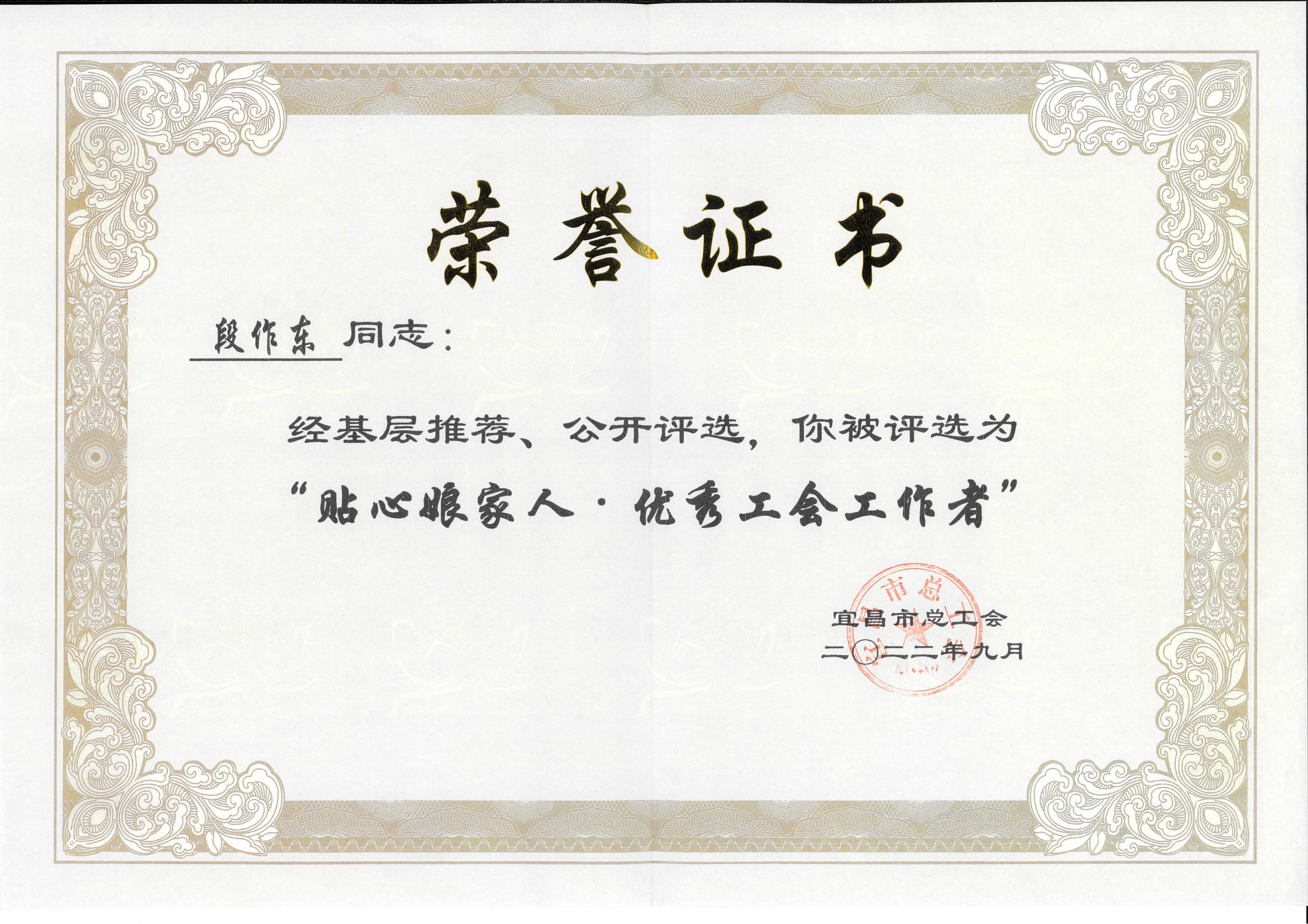 段作東同志被評為“貼心娘家人·優(yōu)秀工會工作者”