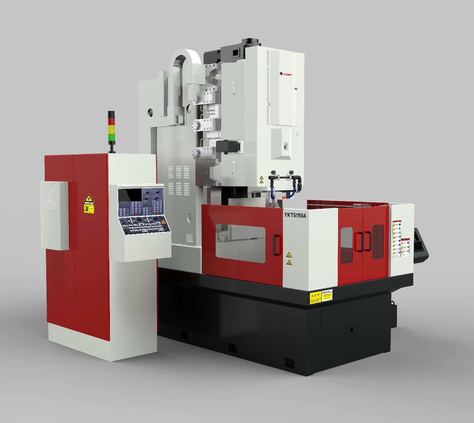 2.機(jī)床具備刀具提拉功能、工作臺采用滾動(dòng)軸承定心。主運(yùn)動(dòng)由交流變頻電機(jī)驅(qū)動(dòng),切削時(shí)通過交流伺服電機(jī)驅(qū)動(dòng)立柱移動(dòng)實(shí)現(xiàn)徑向進(jìn)給;因機(jī)床具備刀架提拉機(jī)構(gòu),特別適合加工深孔內(nèi)齒,同時(shí)大幅提升雙聯(lián)齒輪及不同齒厚的內(nèi)、外齒加工效率??筛鶕?jù)切削需要設(shè)置循環(huán)次數(shù)及每次循環(huán)的徑向切入量。
